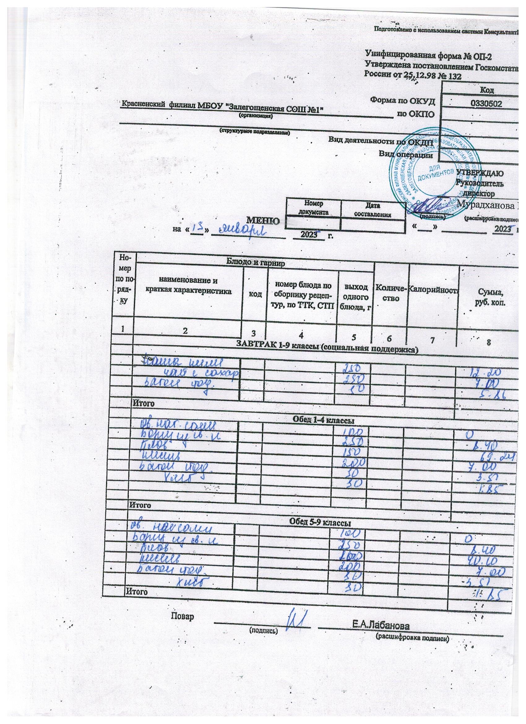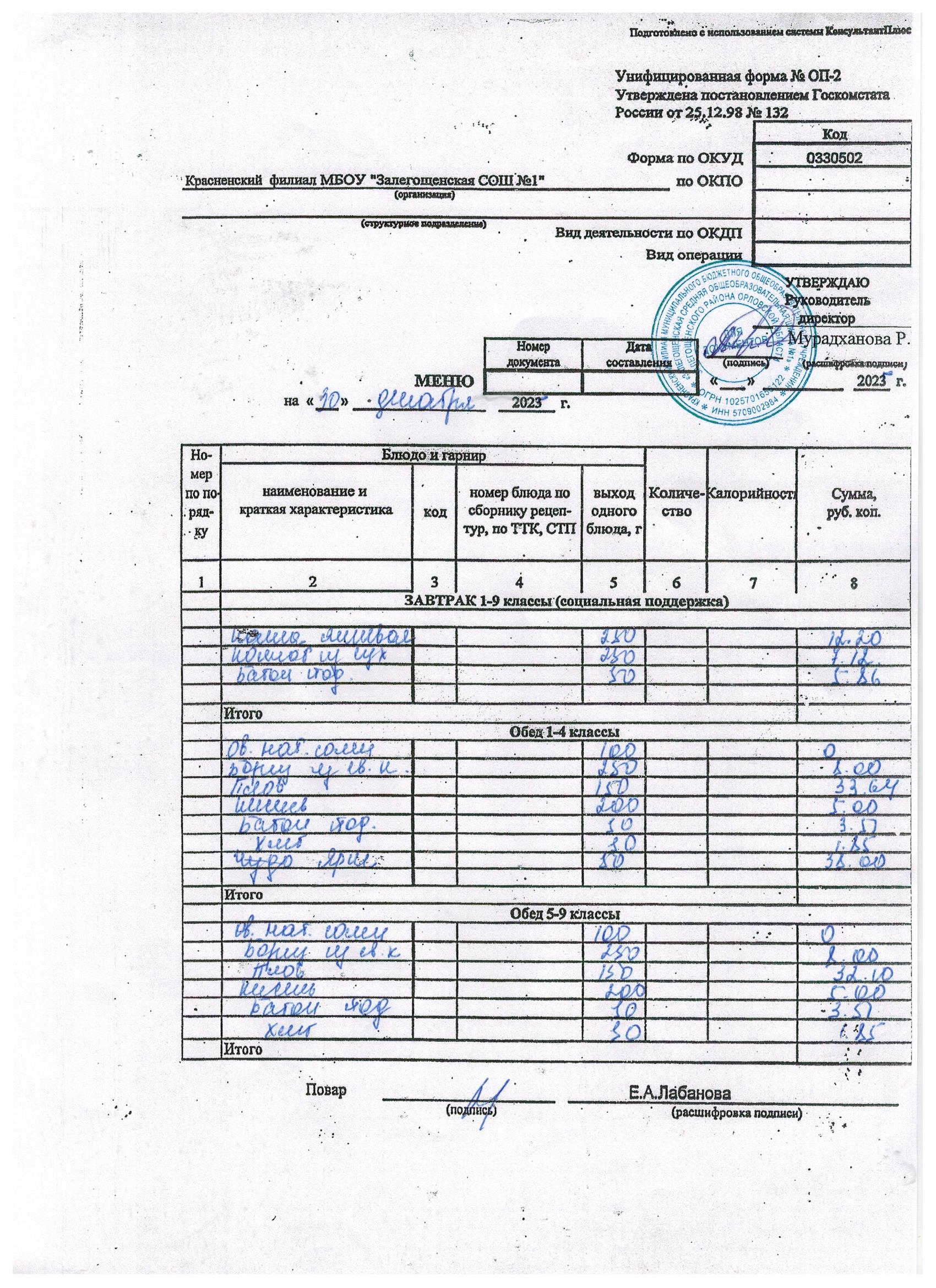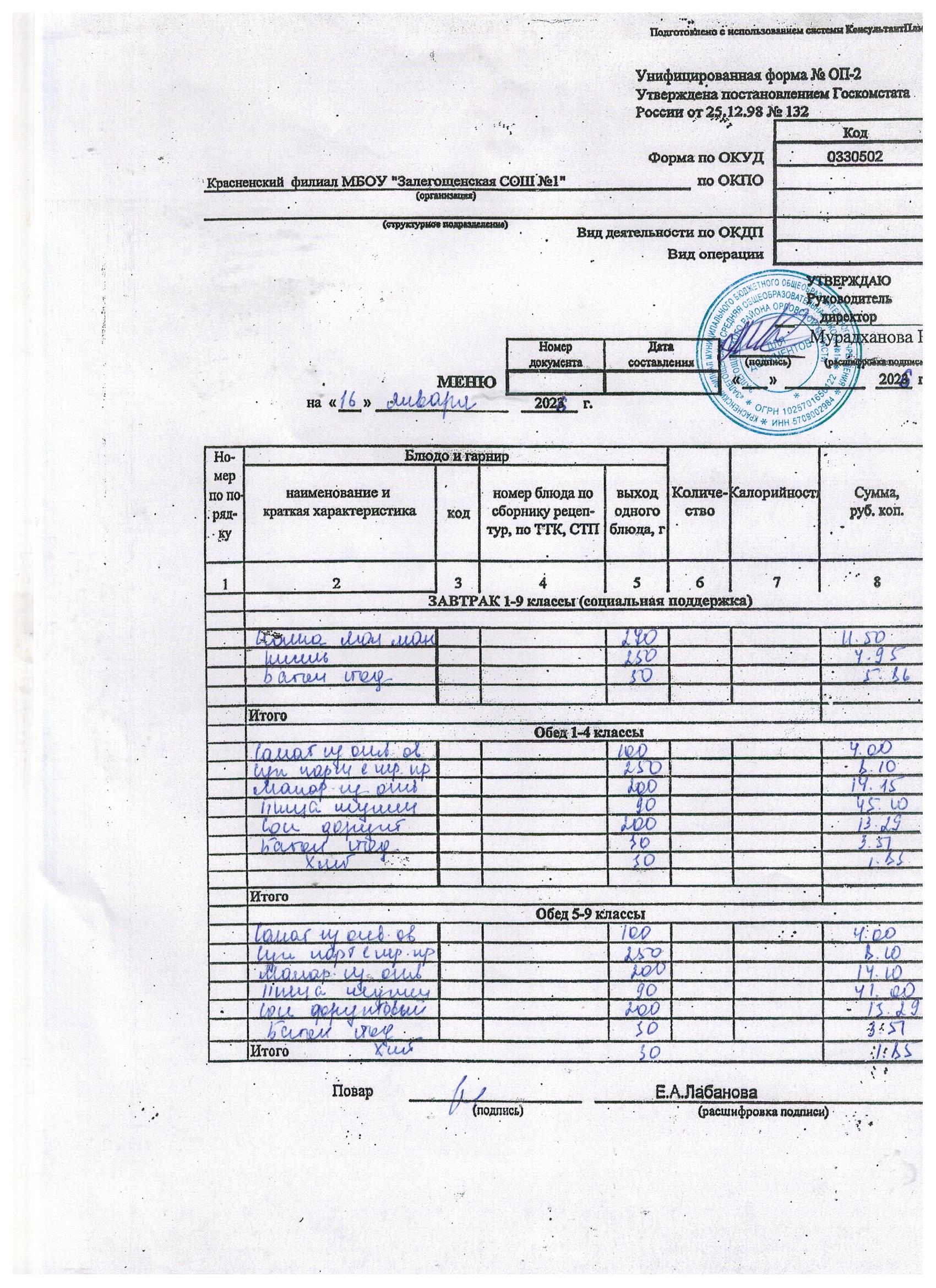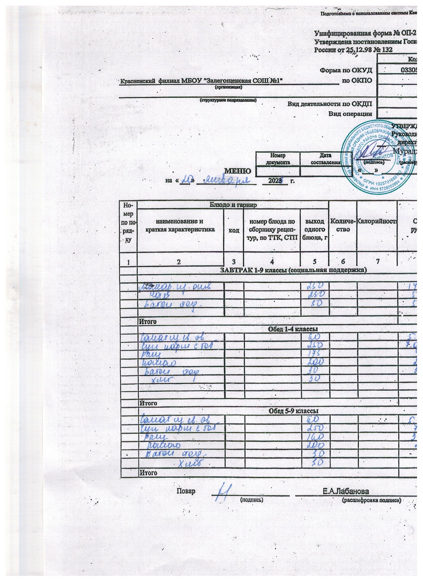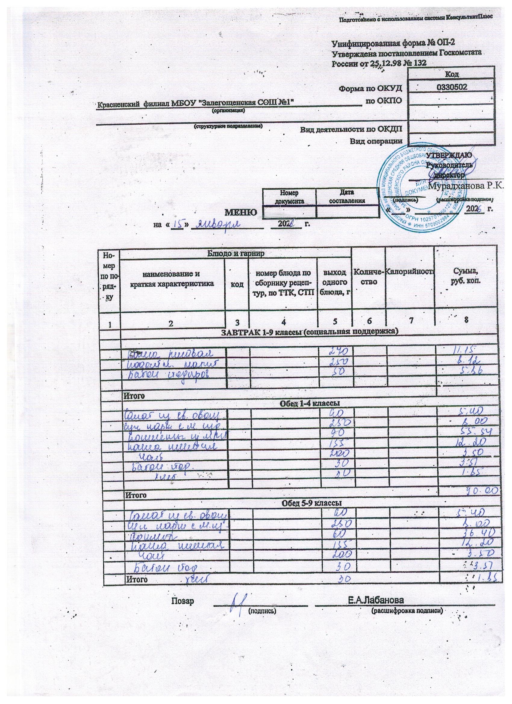 Ежедневное меню на январь 2026г